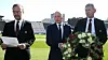 Etter en kort tale fra Ed Woodward la de to tidligere United-spillerne Bryan Robson Mickey Thomas ned krans.