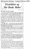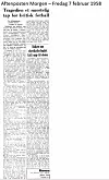 «Over hundre tusen mennesker kranset gatene i Manchester i natt for å vise ofrene for flyulykken ved München den siste ære. Folk knelte på fortauet langs ruten der prosesjonen med de ti likvognene kjørte fram. Kortesjen kjørte til fotballbanen Trafford hvor det ble holdt en minnehøytidelighet. En stor menneskemengde ble på banen, og mange gikk ikke hjem til sitt før i grålysningen i dag.»