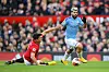 JOKER FRA BENKEN?: Sergio Aguero passerer Harry Maguire forrige sesong. I helgen må Maguire bryne seg på andre City-stjerner for Aguero kommer ikke til å starte helgens byderby.