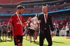Montasje: Erik ten hag hilser på Sir Jim Ratcliffe etter FA-cupfinaleseieren mot Manchester City, og Erik ten Hag som løfter troféet. 25. mai 2024.