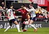Geyse i duell med to Leicester-spillere under søndagens kamp