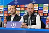 Sent, men godt tirsdag kveld ankom Erik ten Hag og Christian Eriksen podiet i Parken for den obligatoriske pressekonferansen før onsdagens skjebnekamp mot FC København.