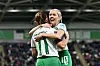 Denise O'Sullivan jubler med Arsenals Katie McCabe etter at sistnevnte scoret for Irland mot Nord-Irland i desember.