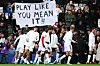 KLAR TALE: United-fansen viste et banner med «Play like you mean it» på Craven Cottage.