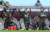 Kieran McKenna, Ole Gunnar Solskjær og Michael Carrick avbildet under en kamp mot Aston Villa i mai 2021.Manchester United
