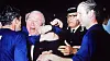 Sir Matt Busby feirer med spillerne etter Serievinnercupfinalen i 1968.