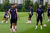 Bruno Fernandes, Noussair Mazraoui og Bryan Mbeump på trening i USA.