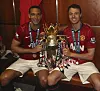 Rio Ferdinand og Jonny Evans med Premier League-trofeet i 2013.Manchester United