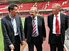 KRITISK: Richard Caborn (i midten), mener det vil være helt feil at United skal få mulighet til å bygge et nytt stadion med offentlighetens penger. Her er han sammen med Sir Sebastian Coe og Sir Alex Ferguson på Old Trafford i forbindelse med OL i London i 2012.