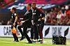 Martin Ho og Marc Skinner følger engasjert med fra sidelinjen under FA-cupfinalen mellom Manchester United og Chelsea på Wembley.Clive Rose