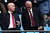 Sir Alex Ferguson nyter pensjonisttilværelsen - her under møtet mot Manchester City 14. september - med Omar Berrada til venstre.