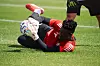 André Onana i aksjon på treningsfeltet på Carrington før han pådro seg skaden.