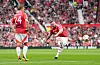 16 min: Frispark til United i en skummel posisjon. Wayne Rooney tar det. Rett i muren