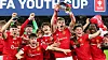 Rhys Bennett løfter FA Youth Cup-troféet.