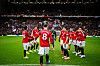 Casemiro, Diogo Dalot, Kobbie Mainoo og Bruno Fernandes jubler sammen med Patrick Dorgu etter sistnevntes scoring under Arsenal 2-3 Manchester United, 25. januar 2026.