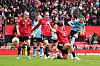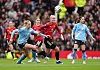 11: United med sin første avslutning. Står høyt etter et City-innkast. Malard finner Awujo som fra skrått hold skyter mot nærmeste stolpe. Like utenfor.