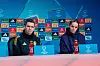 Marc Skinner og Hanna Lundkvist på pressekonferanse i München før onsdagens Champions League-kamp mot Bayern.