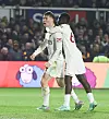 Kobbie Mainoo og Rasmus Højlund etter danskens mål mot Newport.