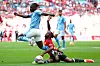 Aaron Wan-Bissaka i kjent positur. Her setter han inn en takling mot Jeremy Doku i FA-cupfinalen.Getty Images Sport