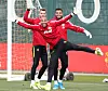 GOD STEMNING: Keeperteamet fotografert på onsdagens trening.