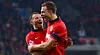 Ryan Giggs og Jonny Evans feirer sistnevntes mål mot Bayer Leverkusen onsdag.