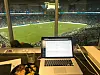 Glassbur. Verste måten å se fotball på. Slik var det både i Miami og Ann Arbor. Isoleres helt fra kampopplevelsen.