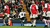 MATCHVINNER: Paul Scholes feirer vinnermålet mot Arsenal i FA-cupsemifinalen 3. april 2004. Arsenals Patrick Vieira, Robert Pires og Sol Campbell fortviler.