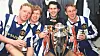5. MAI 1996: David May, Paul Scholes, Ryan Giggs og Nicky Butt feirer 3-0-seier i Middlesbrough – og dermed ligatroféet.