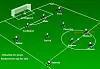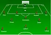 Dette bildet er hentet fra Uniteds første kamp borte mot Everton. Vi brukte dette bildet i den forrige analysen også, men dette viser hvor smale United blir når ikke backene er med i angrepene. I forrige kamp mot Fulham så var United fae til å få frem Rafael og Evra som gjorde at hele banestørrelsen ble benyttet når United angrep. I denne kampen så falt United tilbake til gamle synder :