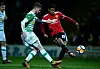 Trodde nok han hadde gitt United 1-0 med et velplassert skudd i første keeper, men keeper Artur Krysiak nektet 21-åringen hans første United-scoring i en obligatorisk kamp. Gjør det enkelt og pådrar seg et gult kort.