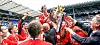 Det var en beslutning franskmannen ikke kom til å angre, for United gjenerobret ligagullet etter en dramatisk innspurt. Tittelforsvarer Arsenal, som lenge hadde hatt et fast grep om sin andre, strake ligatriumf, ble innhentet og fraløpt på oppløpssiden. Da kunne Blanc & co. løfte Premier League-trofeet etter 2-1-seieren over Everton i ligaavslutningen på Goodison Park.