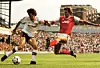 Highbury, 23. aug. 1986: PETER DAVENPORT forsøker å skjerme ballen unna Arsenal-stopper Tony Adams.