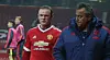 SMILTE FØR KAMPSTART: Louis van Gaal så ut til å glede seg stort over å endelig få se Rooney tilbake i spill.
