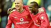 AVGJORDE: Dwight Yorke gratulerer David Beckham med seiersmålet borte mot City i november 2000.