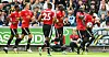 ERIC BAILLY (ytterst til høyre) tiljubles etter å ha sendt United i føringen mot Swansea.