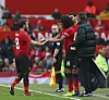 ØYEBLIKKET: Tahith Chong erstatter Juan Mata, som gir noen gode ord på veien.