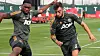 PÅ TRENING MED A-LAGET: Teden Mengi i aksjon på trening med Bruno Fernandes i september. Nå har unggutten skrevet under på en ny kontrakt som varer helt til juni 2024.