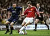 Nyinnkjøpte Jaap Stam har en tøff dag på jobben og blir tidvis herjet med av den unge Arsenal-spissen Nicolas Anelka.