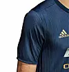 Hele draktsettet har nemlig et mørkeblått preg, med de verdenskjente adidas-stripene i svart nedover under armene denne gangen og nedover shortsen.