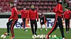 BILDESERIE: Med flere smil og dansk klima gjennomførte United en siste treningsøkt før møtet med Midtjylland.