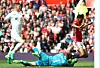 45+3: United får straffespark! Reprisene viser muligens at Rashford er litt heldig der, for det ser ut til at oppsøker hendene til Fabianski. Sisteskansen trekker til seg armene og hadde ikke truffet Rashford der dersom ikke Rashford hadde aktivt oppsøkt dem.